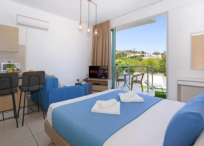 从Meryl - Beachfront Apartment到普罗塔拉斯无花果树湾步行只需7分钟就到了,设有设施齐全的厨房. 该别墅一共有1间卧室,同时设有阳台,个人保险箱 和高速上网.